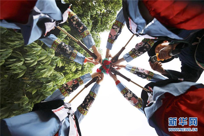 5月14日,在畢節(jié)市黔西縣協和鎮(zhèn)立新村立新小學,孩子們在老師的指導下學習蘆笙。新華社發(fā)(周訓超 攝)