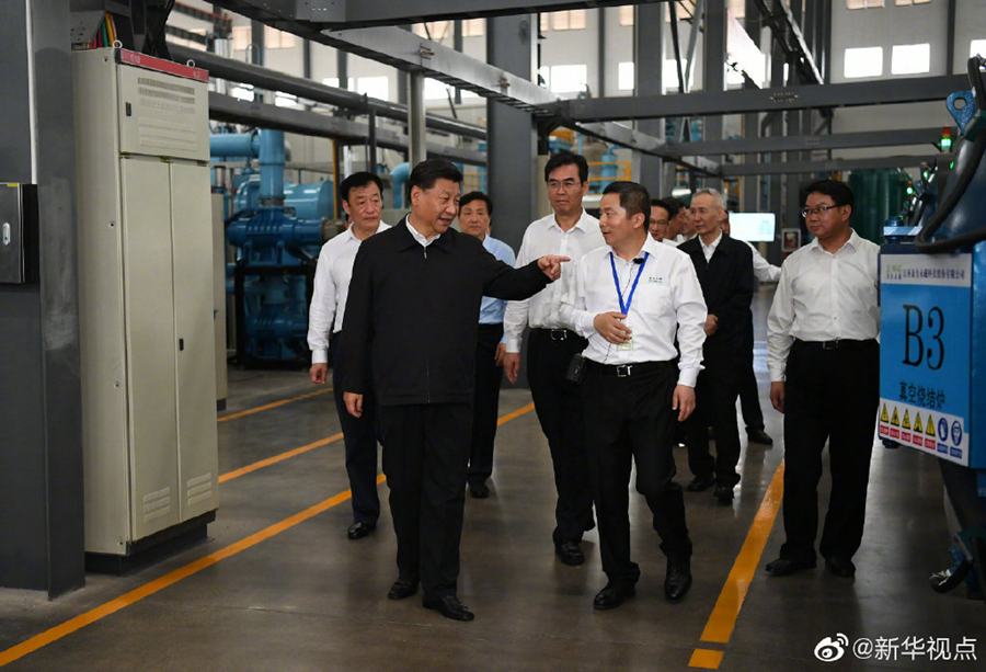 習(xí)近平總書(shū)記20日赴江西考察調(diào)研。他首先考察了位于贛州市的江西金力永磁科技股份有限公司,了解企業(yè)生產(chǎn)經(jīng)營(yíng)和贛州市稀土產(chǎn)業(yè)發(fā)展情況。(文字:張曉松 攝影:鞠鵬、謝環(huán)馳)