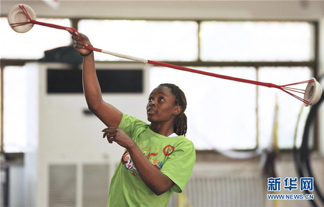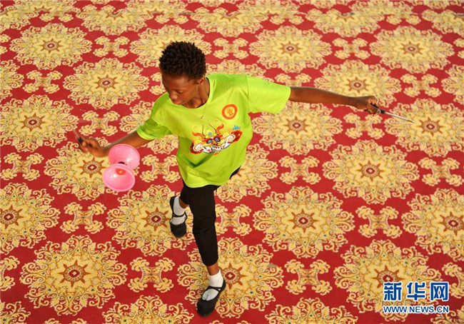 5月20日,在吳橋雜技藝術(shù)學校,留學生練習雜技。 新華社發(fā)(苑立偉 攝)