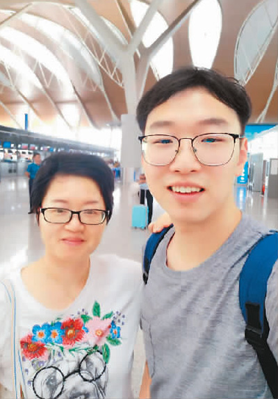 2018年9月底,丁申昊(右)去往德國之前與母親在浦東機(jī)場的合影。 |