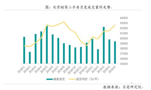 北京鏈家二手房月度成交量價走勢。來源:貝殼研究院