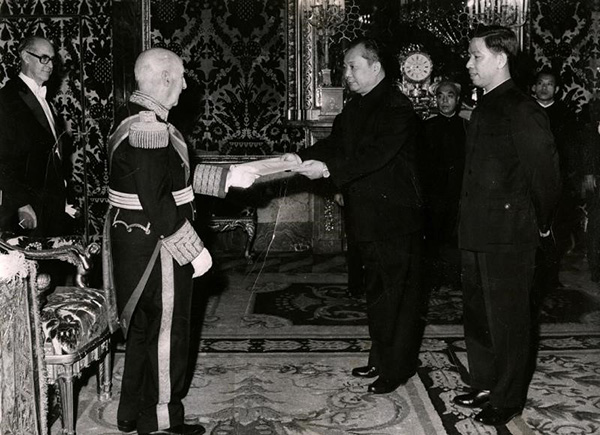 當(dāng)時(shí)的西班牙正處在弗朗哥統(tǒng)治時(shí)期。當(dāng)共產(chǎn)黨領(lǐng)導(dǎo)的中國(guó)外交官來到了西班牙,當(dāng)中國(guó)在西方的封鎖圈中與西班牙建交,當(dāng)五星紅旗在馬德里城頭升起的時(shí)候,整個(gè)西班牙、整個(gè)歐洲、整個(gè)世界都為之震驚了。