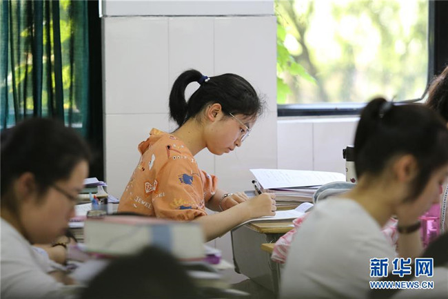 6月4日,在浙江省衢州二中,高三學生在教室復習備考。新華社發(fā)(劉惠震攝)