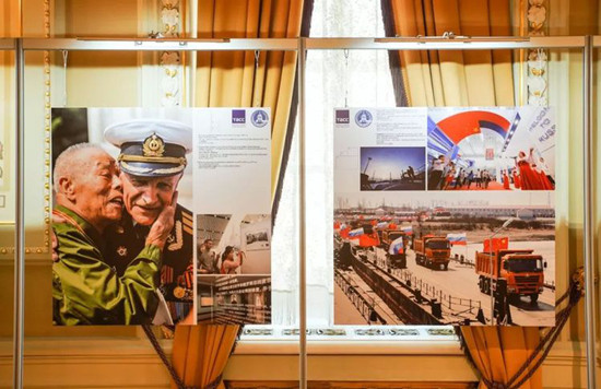 古老的莫斯科大劇院悄然矗立在暮色中,靜靜地述說(shuō)著百年滄桑。大劇院內(nèi)中俄建交70周年圖片展展區(qū),一張中俄抗戰(zhàn)老戰(zhàn)士緊緊相擁的照片格外引人注目。兩位老人一身戎裝臉貼臉動(dòng)情擁抱,眼神中、皺紋里都寫滿了動(dòng)人的故事。
