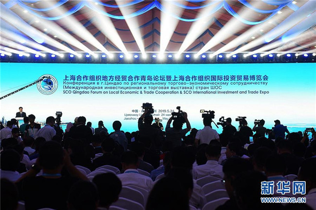 這是5月24日拍攝的首屆上海合作組織地方經(jīng)貿(mào)合作青島論壇暨上海合作組織國際投資貿(mào)易博覽會開幕式。