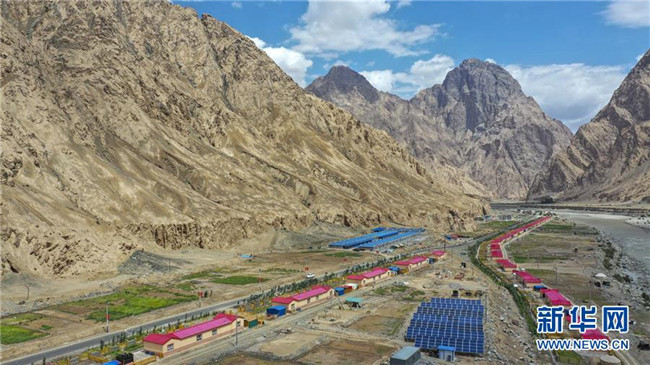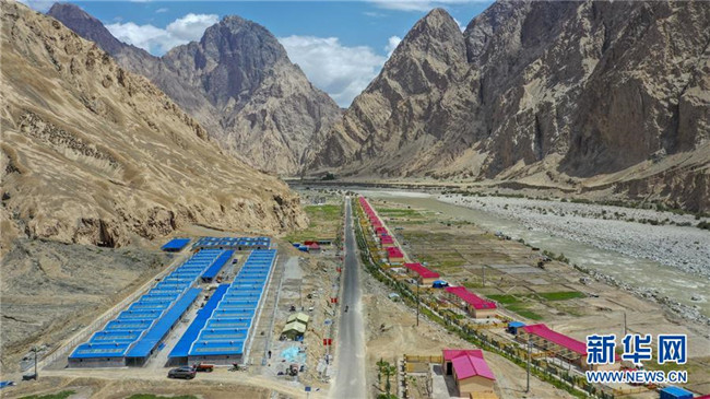 這是在新疆塔什庫(kù)爾干塔吉克自治縣大同鄉(xiāng)克其克同村拍攝的一處易地扶貧搬遷安置點(diǎn)(6月18日無(wú)人機(jī)拍攝)。新華社記者胡虎虎攝