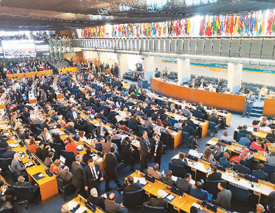 6月23日在意大利羅馬召開的聯(lián)合國糧食及農(nóng)業(yè)組織大會(huì)第41屆會(huì)議會(huì)場。新華社記者 陳占杰攝