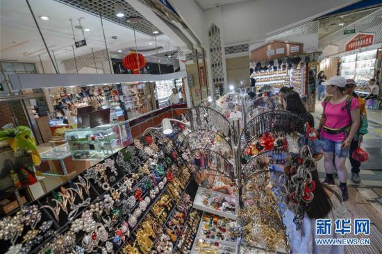 游客在新疆國(guó)際大巴扎景區(qū)購(gòu)買手工藝品(7月13日攝)。