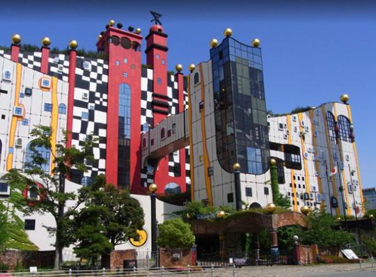 而在《名偵探柯南》里出現(xiàn)的垃圾處理廠也有真實場景。由宮崎駿的偶像百水先生進行外觀設(shè)計的大阪舞洲島垃圾處理廠,遠遠看去仿佛游樂場,不知情的人絕不會把它和垃圾聯(lián)系在一起。處理廠干凈整潔、色彩明亮得恍若安徒生的童話世界,紅黃的條紋象征著燃燒的火焰,形態(tài)各異的可愛窗子與爬山虎裝點著墻壁,標(biāo)志性的長管煙囪令人想起長發(fā)公主的城堡……