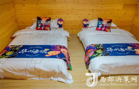 再往里邊走就是大朋友(成人)的休息場所,同樣以華山故事為主題布置的床,干凈整潔,元素主題鮮明,床上還為大朋友(成人)準(zhǔn)備了“華山吾俠”系列U型枕,自駕來的朋友可以帶上它,來緩解因久坐開車帶來的頸椎酸痛。
