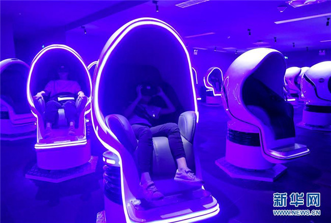 7月24日,家長(zhǎng)和孩子在湖南省博物館通過(guò)虛擬現(xiàn)實(shí)設(shè)備觀影。