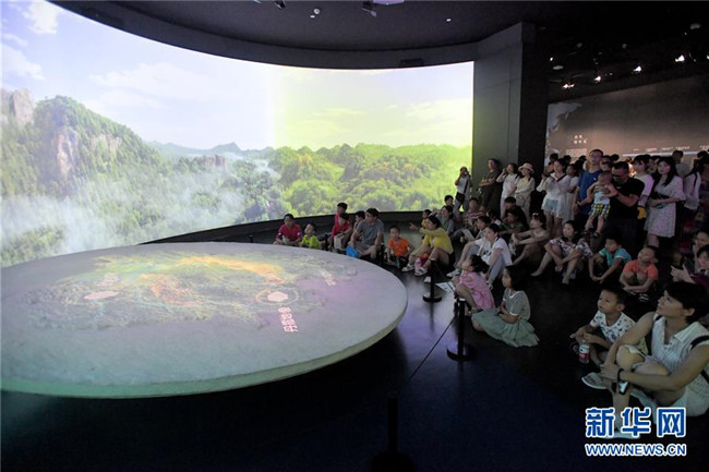 7月24日,家長(zhǎng)和孩子在湖南省博物館觀看科普短片。