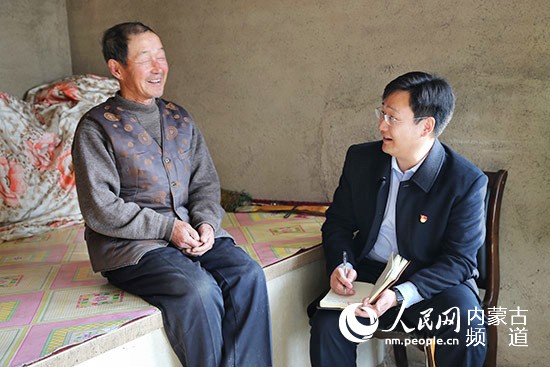 張驊走訪建檔立卡貧困戶高玉良家,仔細(xì)詢問高玉良老人發(fā)展庭院經(jīng)濟(jì)的意愿以及脫貧過程中還有什么困難。