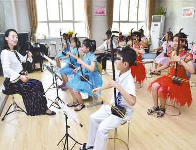 在河北省新樂市青少年活動(dòng)中心,孩子們參加二胡興趣班。 影像中國