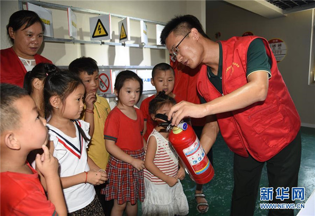 當(dāng)日,山東省汶上縣劉樓鎮(zhèn)舉行兒童安全教育活動,組織小朋友到安全教育體驗基地學(xué)習(xí),加強安全意識,平安度過暑假。 新華社記者 任鵬飛 攝