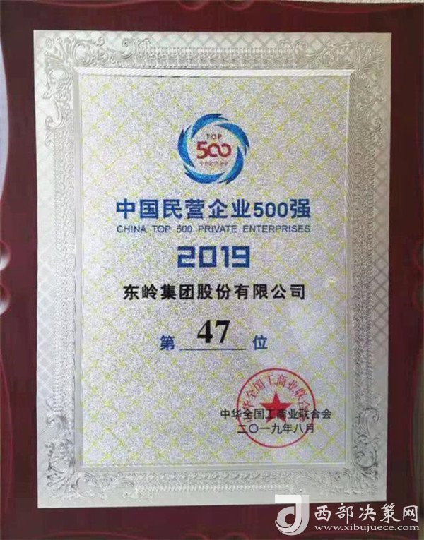 8月22日上午,由全國工商聯(lián)、青海省人民政府共同舉辦2019中國民營企業(yè)500強峰會在青海召開。東嶺集團位列2019中國民營企業(yè)500強第47位,名列陜西省民營企業(yè)第一,這也是東嶺集團連續(xù)18年榜上有名!同時,東嶺集團還位列2019中國民營企業(yè)服務業(yè)100強第17位。