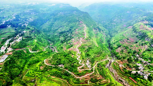 航拍大方縣對江鎮(zhèn)營興村通組公路?!≈苡栙F 攝