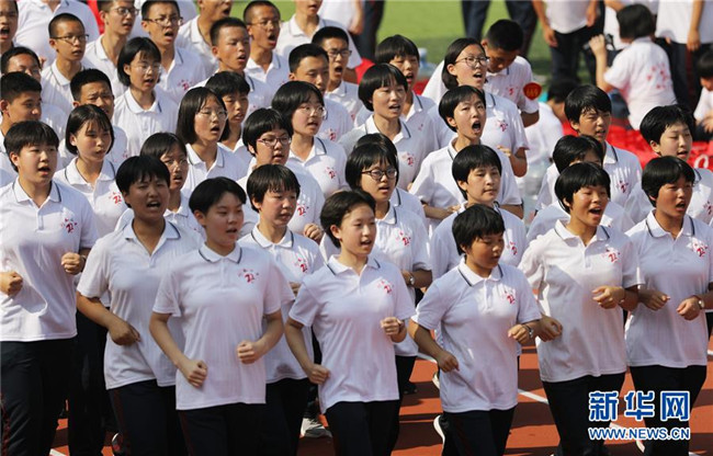 8月27日,河北省衡水市第二中學高一新生在參加列隊跑步訓練。新華社記者朱旭東攝