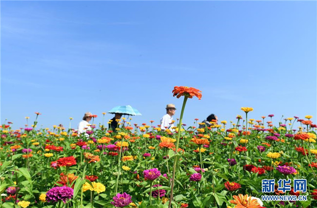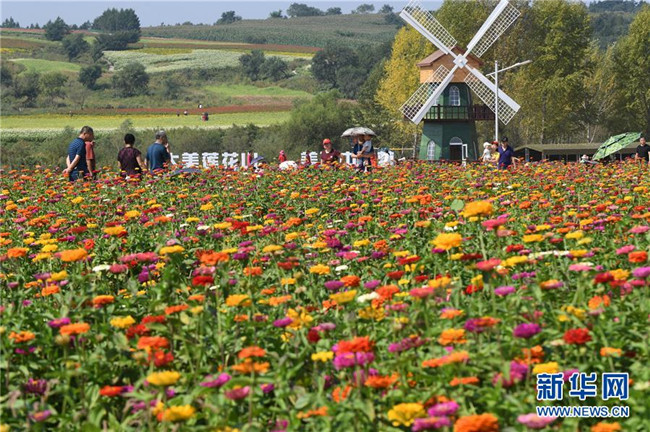 9月4日,長(zhǎng)春市蓮花山生態(tài)旅游度假區(qū)花田里鮮花綻放。