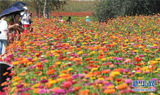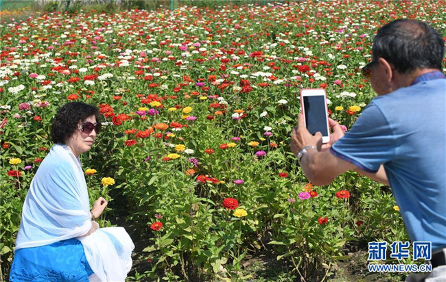 9月4日,游客在長(zhǎng)春市蓮花山生態(tài)旅游度假區(qū)花田里賞花。