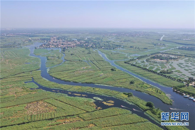 這是8月31日使用無人機拍攝的白洋淀內村莊。新華社記者 牟宇 攝