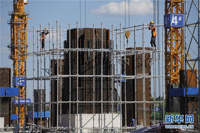 工人在京雄城際鐵路雄安站施工(8月29日攝)。新華社記者 邢廣利 攝