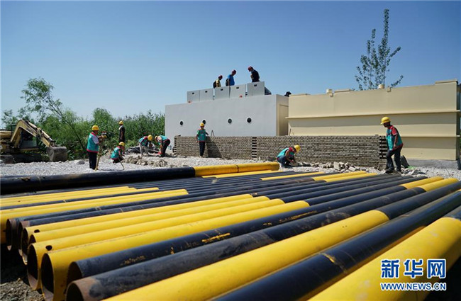 這是8月31日拍攝的白洋淀望月島污水凈化工程施工現場。新華社記者 牟宇 攝