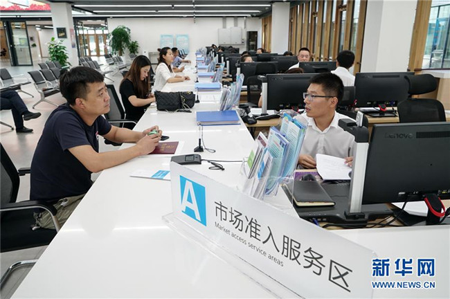 企業(yè)工作人員在雄安新區(qū)政務服務中心內辦理業(yè)務(8月30日攝)。新華社記者 牟宇 攝