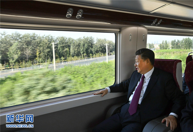 9月25日上午,北京大興國際機場投運儀式在北京舉行。中共中央總書記、國家主席、中央軍委主席習近平出席儀式,宣布機場正式投運并巡覽航站樓。這是習近平乘坐軌道列車前往北京大興國際機場。 新華社記者 謝環(huán)馳 攝