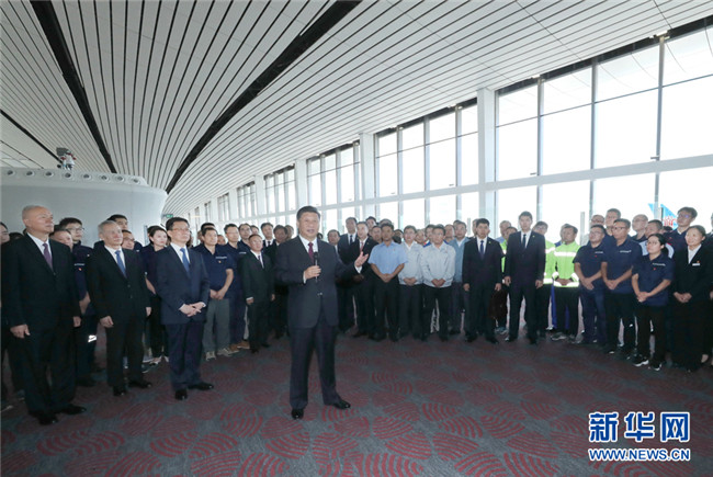 習近平強調(diào),共和國的大廈是靠一塊塊磚壘起來的,人民是真正的英雄。大興國際機場體現(xiàn)了中國人民的雄心壯志和世界眼光、戰(zhàn)略眼光,體現(xiàn)了民族精神和現(xiàn)代水平的大國工匠風范。他希望廣大建設(shè)者在新的征程上再接再厲、再立新功!