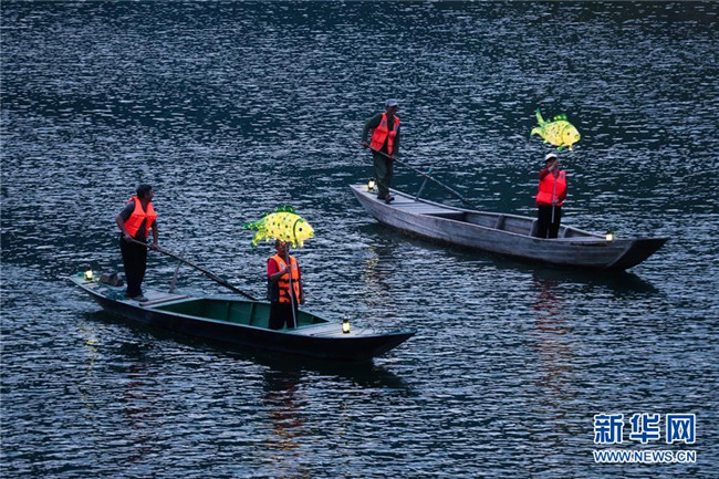 9月25日,在宋村鄉(xiāng)云源港的水面上,漁民劃著漁船,船頭點亮漁燈,構(gòu)成一幅“漁舟唱晚、萬家燈火”的美麗圖景。