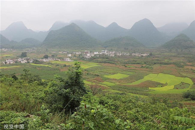 2019年9月8日,由保加利亞大馬士革(中國)有限公司、中鐵二十局集團與貴州省六盤水市六枝特區(qū)共同開發(fā)建設的“‘一帶一路’中國—保加利亞玫瑰產(chǎn)業(yè)基地”奠基儀式在貴州省六盤水市六枝特區(qū)落別鄉(xiāng)舉行。 圖為“中國—保加利亞玫瑰產(chǎn)業(yè)基地”選址。 瞿宏倫(貴州分社)/中新社/視覺中國(圖片來源:視覺中國)