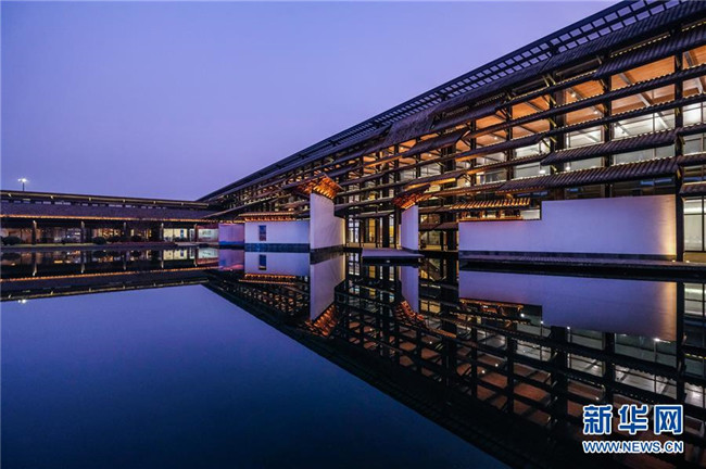 這是10月19日拍攝的烏鎮(zhèn)互聯(lián)網(wǎng)國際會(huì)展中心夜景。 新華社記者 徐昱 攝