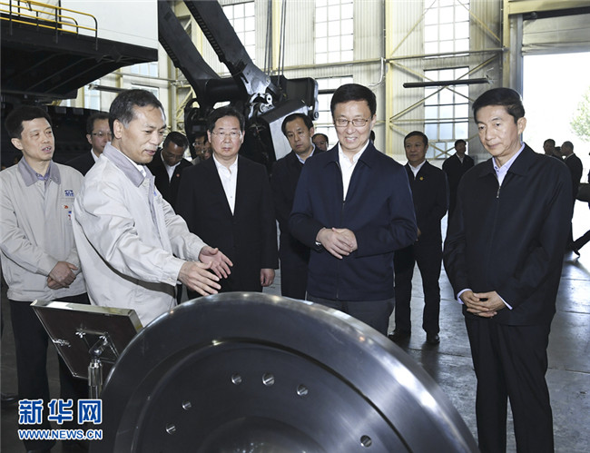 太原重型機(jī)械集團(tuán)有限責(zé)任公司是新中國(guó)自行設(shè)計(jì)建設(shè)的第一座重型機(jī)械廠。韓正來(lái)到這里,考察礦山挖掘機(jī)、高鐵輪對(duì)等先進(jìn)機(jī)械研發(fā)生產(chǎn)情況。韓正強(qiáng)調(diào),重型機(jī)械是國(guó)之重器,是先進(jìn)制造業(yè)的重要支撐,要加快產(chǎn)品智能化步伐,提高生產(chǎn)線和生產(chǎn)設(shè)備的國(guó)產(chǎn)化率,實(shí)現(xiàn)精密零部件加工的技術(shù)突破,積極拓展“一帶一路”沿線國(guó)家市場(chǎng),加強(qiáng)人才隊(duì)伍建設(shè),打造具有國(guó)際競(jìng)爭(zhēng)力的高端裝備制造產(chǎn)業(yè)。韓正走進(jìn)生產(chǎn)車(chē)間,勉勵(lì)一線工人抓住轉(zhuǎn)型升級(jí)機(jī)遇,推動(dòng)企業(yè)加快發(fā)展,實(shí)現(xiàn)個(gè)人價(jià)值。