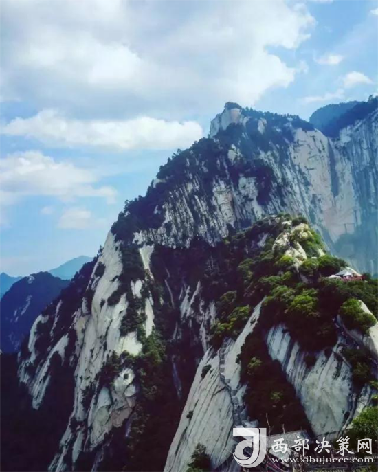 五岳中,西岳以險(xiǎn)著稱。華山于渭河平原上拔地而起,像一塊囫圇大石四面被刀削斧鑿一般,山勢雄偉,奇峰突起,前瀕黃河,后接秦嶺。