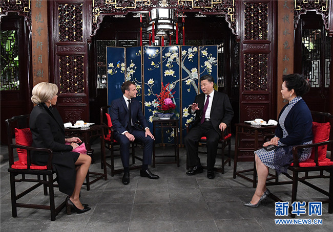 國家主席習近平和夫人彭麗媛5日晚在上海豫園會見法國總統(tǒng)馬克龍和夫人布麗吉特。