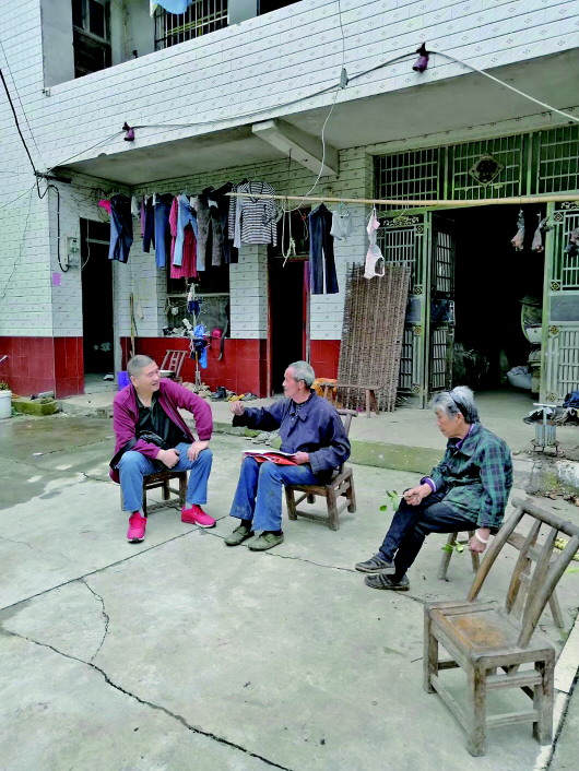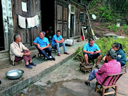 ▲朱明星(左一)到貧困戶家中交流。