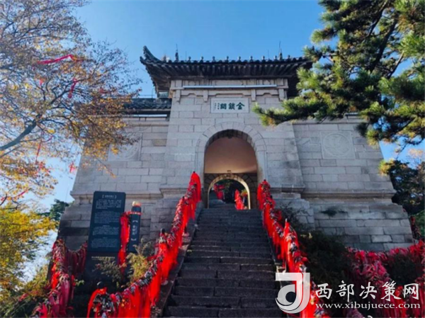金鎖關是建在三峰口的一座城樓般石拱門,是經(jīng)五云峰通往東、西、南、中四峰的咽喉要道,鎖關后則無路可通,所以又稱為通天門。關內關外登山路兩側鐵索上掛滿的情侶鎖、平安鎖重重疊疊,紅繩彩線迎風搖曳,也是關前一道美麗的風景。