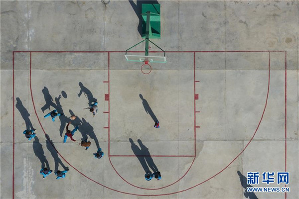 11月19日,在新疆于田縣達(dá)里雅布依鄉(xiāng)易地扶貧搬遷安置點的新學(xué)校,課間休息時,孩子們在水泥操場上打籃球。在該校位于塔克拉瑪干沙漠腹地的舊址,孩子們平時只能在沙土地上玩耍。新華社記者沈伯韓攝