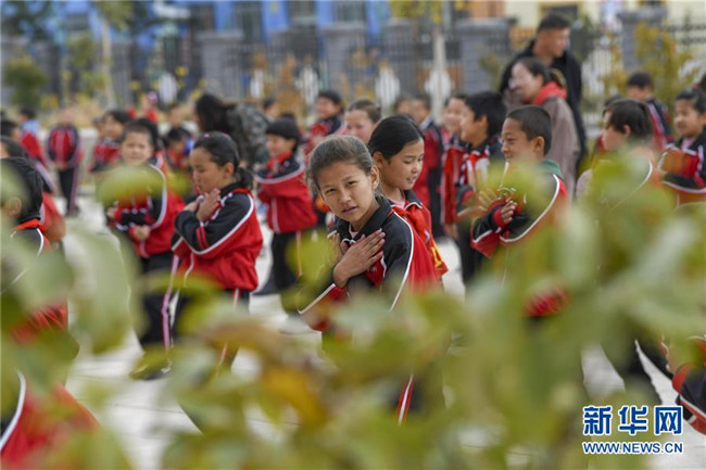 在哈密幸福村小學(xué)里,孩子們在做課間操(10月22日攝)。新華社記者 趙戈 攝