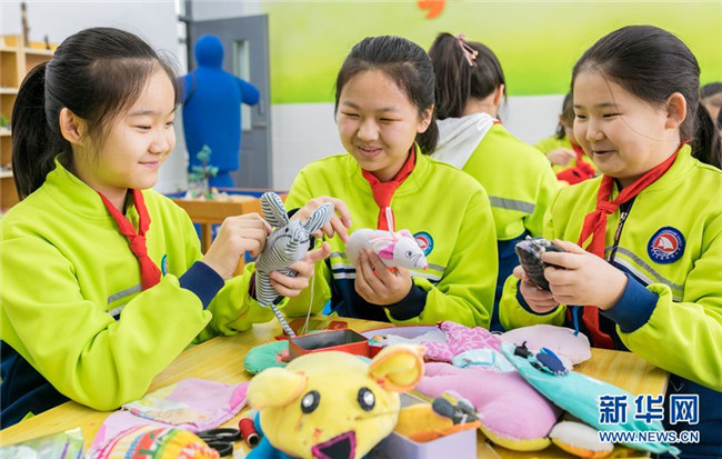當(dāng)日,內(nèi)蒙古呼和浩特市玉泉區(qū)通順街小學(xué)“巧手社團(tuán)”的學(xué)生在老師的指導(dǎo)下,利用身邊的布頭、絲綿等廢棄物,制作生肖鼠布藝作品,表達(dá)對新年的美好祝愿。近年來,玉泉區(qū)教育部門大力推動“傳統(tǒng)文化進(jìn)校園”活動,在當(dāng)?shù)貙W(xué)校里開設(shè)剪紙、面塑、戲曲等民間藝術(shù)課程,讓學(xué)生感受傳統(tǒng)文化的魅力。 新華網(wǎng) 發(fā)(丁根厚 攝)