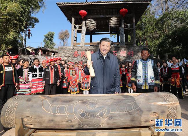 春節(jié)前夕,中共中央總書(shū)記、國(guó)家主席、中央軍委主席習(xí)近平赴云南考察,看望慰問(wèn)基層干部群眾。這是1月19日下午,習(xí)近平來(lái)到騰沖市清水鄉(xiāng)三家村中寨司莫拉佤族村看望鄉(xiāng)親們,了解脫貧攻堅(jiān)情況,并向大家送上新春祝福。 新華社記者 鞠鵬 攝