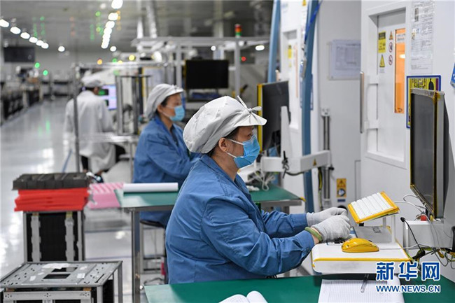 在位于深圳市龍崗區(qū)的海能達通信有限公司,工人們在生產(chǎn)車間工作(2月10日攝)。新華社記者 梁旭 攝