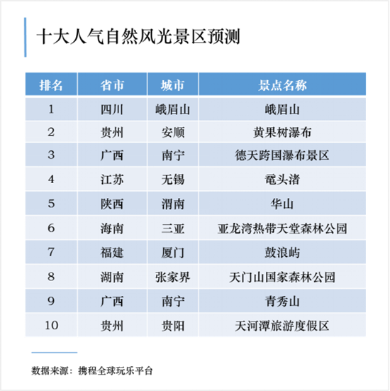 近日,攜程綜合各景區(qū)目前的瀏覽量與門票預(yù)訂量,發(fā)布了“預(yù)約景區(qū)人氣預(yù)測排行榜”,人氣最高的十大自然風(fēng)光類景區(qū)中華山赫然其中。