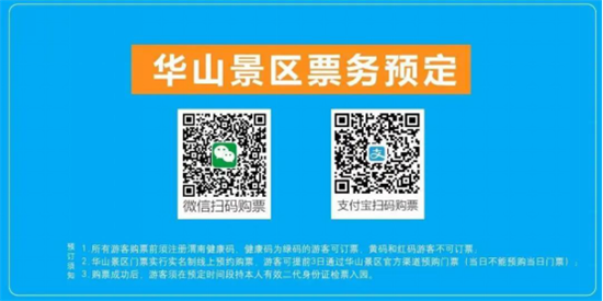 ?。?)游客須通過華山景區(qū)官方網(wǎng)站提前預(yù)購門票,確認(rèn)成功后前往景區(qū)游覽;