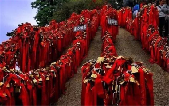 華山是愛情山。“洞房”一詞就源于華山西峰。相傳春秋時(shí)期在華山修行的吹簫人簫史和秦穆公的女兒弄玉就是在華山西峰相識相愛,由于山上沒有房屋,就在崖壁上鑿洞成婚,“洞房”一詞由此誕生。 如今來愛情山的游客都有了一個(gè)約定俗成的習(xí)慣,“進(jìn)山先拜廟,相愛神知道”。一把連心鎖,鎖定你和我”。相愛的情侶,不分年齡,不分國籍,不分信仰,來到山上都要進(jìn)香上鎖,讓華山見證彼此的真心與愛意,祈求幸福美滿,人生甜蜜。