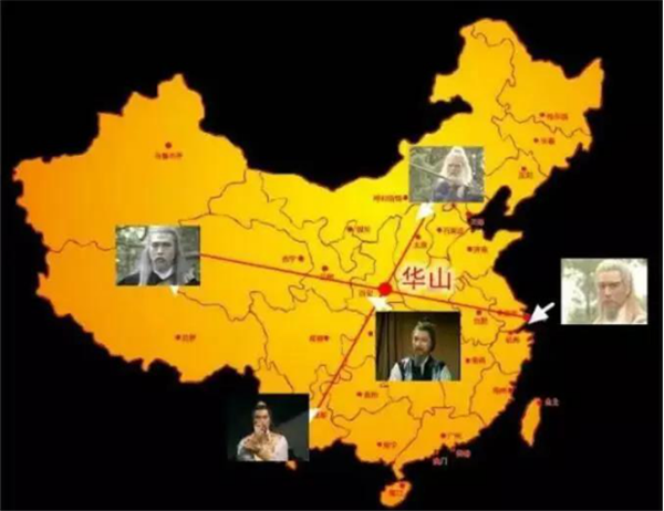南帝段興智遠在云南,北丐洪七公在北方中原地區(qū),東邪在東部桃花島,西毒在西域白駝山,只有王重陽在陜西關(guān)中,如果要從時間成本和人力成本來計算,看似只有把地點選在離大家距離相等的地方,才能保證這場比賽的相對有效和公正。