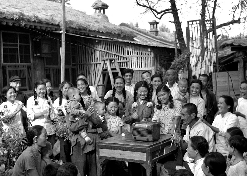 1954年9月15日至28日,第一屆全國人民代表大會(huì)第一次會(huì)議在北京召開。圖為北京郊區(qū)農(nóng)民收聽會(huì)議實(shí)況轉(zhuǎn)播的情形。