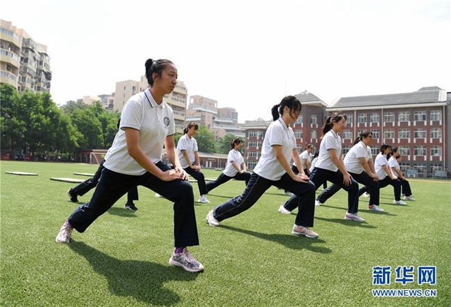 5月28日,北京市第十八中學初三年級的學生在體育課上做準備活動。新華社記者 任超 攝