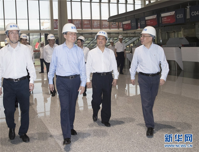 5月30日至31日,中共中央政治局常委、國(guó)務(wù)院副總理韓正在海南調(diào)研。這是5月30日,韓正在??诿捞m國(guó)際機(jī)場(chǎng)二期擴(kuò)建項(xiàng)目施工現(xiàn)場(chǎng),了解規(guī)劃建設(shè)和投產(chǎn)運(yùn)營(yíng)準(zhǔn)備情況。 新華社記者 王曄 攝